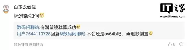 另外一名用户则表示:"标准版如何?[狗头斜眼]"博主回复道:"有潜望镜就算成功[狗头斜眼]"。