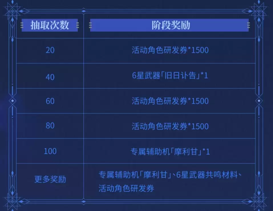 特别之处在于每抽20次都会获得返利奖励,包含角色券、专属武器、辅助机等资源。