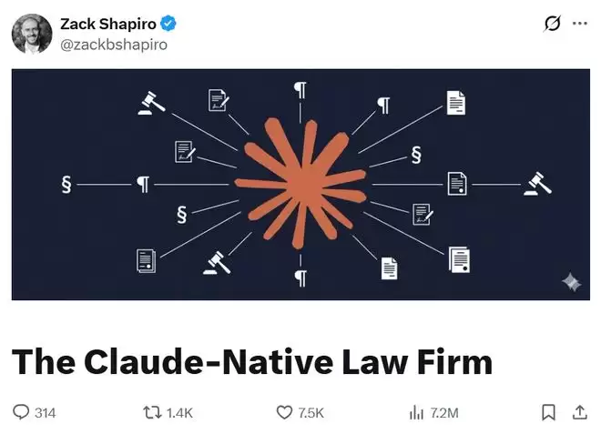 近日,一名来自耶鲁法学院的毕业生、前 Davis Polk & Wardwell(顶尖国际律所)律师 Zack Shapiro(扎克·夏皮罗)在 X 上发布了一篇长文,引发了法律界和科技圈的热烈讨论。