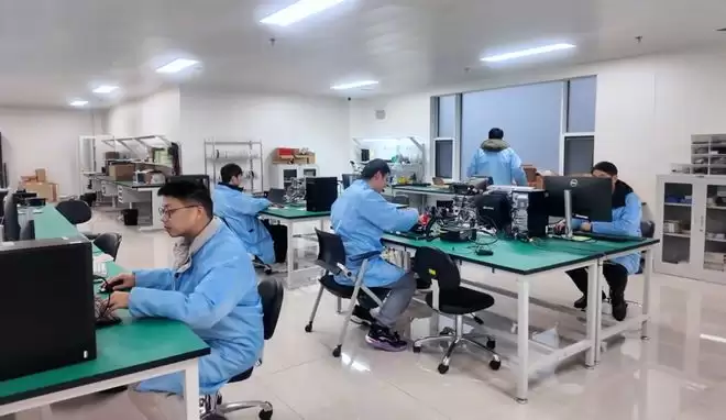 走进汉腾科技的生产车间,机器轰鸣,身着防尘服的工人在各道工序上有条不紊地操作。这条于2025年底投产的产线,目前正处于批量试产阶段,月产能为500-1000台。车间相关负责人告诉记者:“过了春节,第二条产线也将投入使用。两条产线全线开工,预计年产量可突破10万台。”