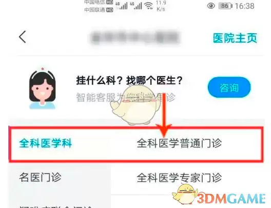 3、进入医院页面后,选择需要挂号的科室门诊。