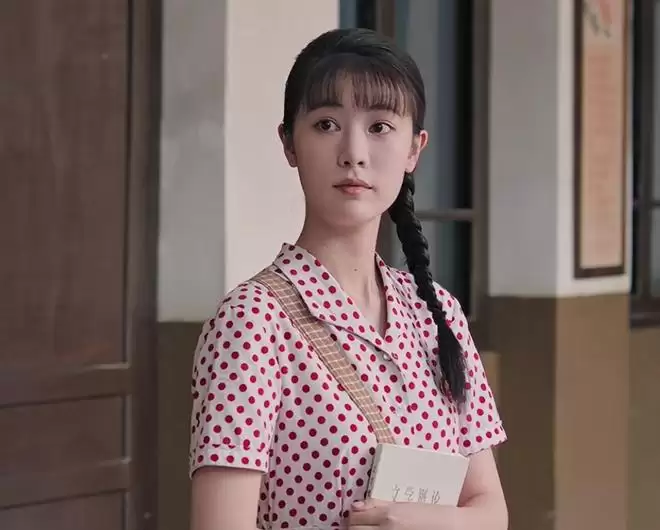 扮演者郭玮洁在剧中留着刘海,并没有多么精致,是很典型的年代风扮相。