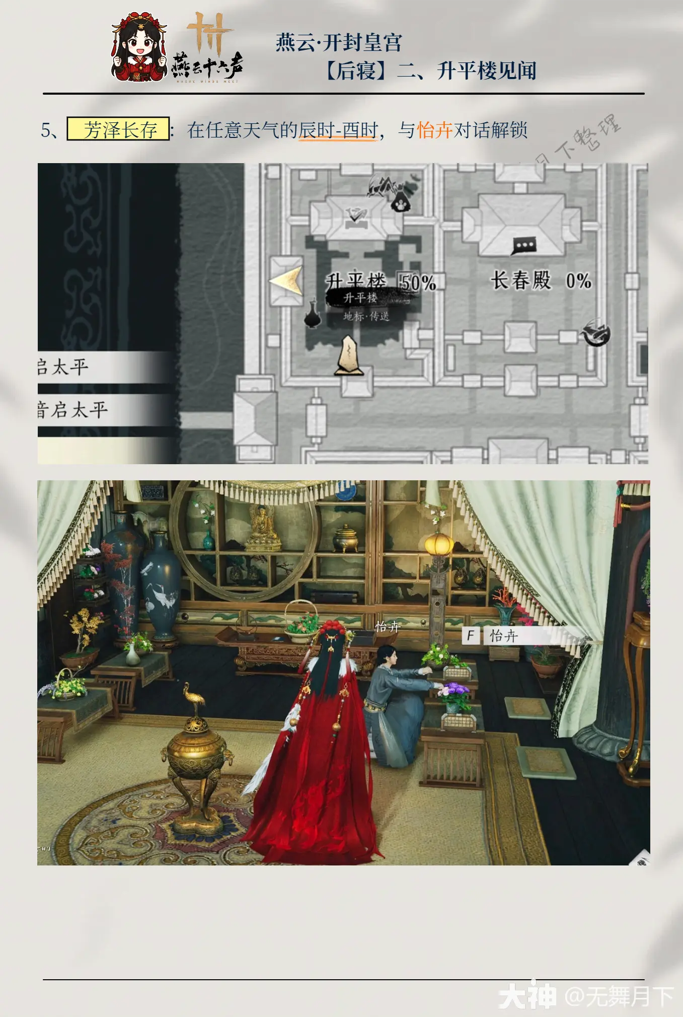 《燕云十六声》开封皇宫升平楼见闻全收集指南