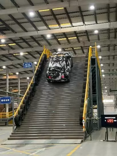 测试现场的电子屏显示,这已经是该车辆进行的第1289次测试。以天门山阶梯的陡峭程度为参照,普通人攀登都相当吃力,更不用说车辆需要同时应对底盘、速度和平衡性等多重挑战。在如此极端的条件下,轮胎与地面的接触面积极小,压强分布极不均匀,稍有不慎就可能出现原地打滑、侧倾甚至后溜的情况。这类场景在影视剧中常见,但在现实中要实现,却需要极高的技术支撑。