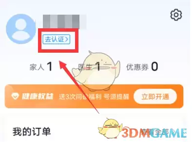 2、进入个人页面后,找到【去认证】选项并点击进入