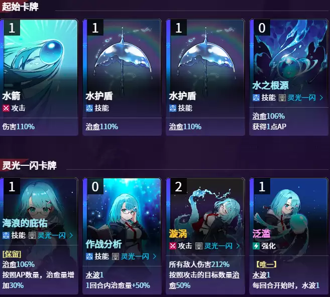 接下来介绍"控制复制范围法"。游戏中的保底机制提供了两次三选一的复制机会,相较于随机触发复制的方式,玩家需要精简可能被复制的选项。在三选一的范围内,包括中立卡和角色专属卡,而具有唯一词条的自身卡牌不会产生影响,复制卡池也不会包含这类卡牌。刷档时通常需要携带特定道具,比如在一层首领战前需要删卡的话,可以优先删除"水之根源"到"漩涡"这几张卡牌,而"泛滥"作为唯一卡牌不会参与复制,因此无需删除。