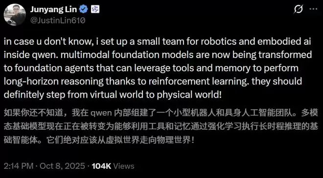 如今,林俊旸选择在这个节点交出千问的接力棒。