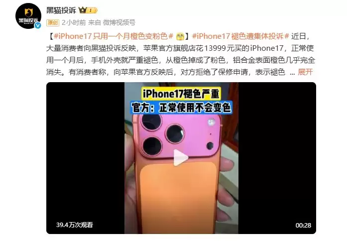iPhone 17“脱色门”引众怒:橙变粉保修难,消费者集体维权