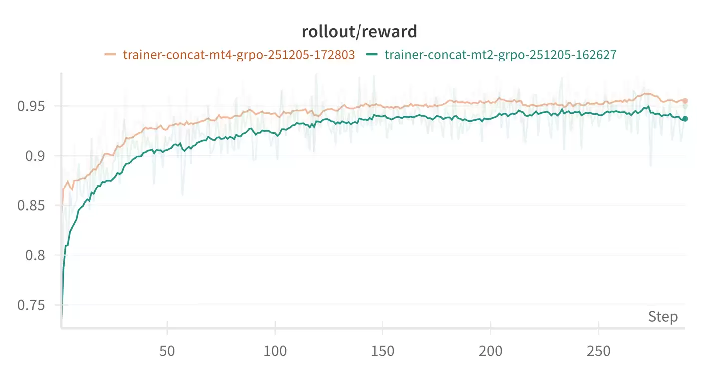 同时,研究团队提出了解耦PPO目标函数,并支持"可中断生成"技术,允许模型在生成过程中无缝更新权重。