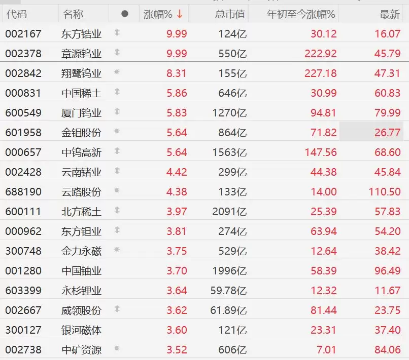 战争金属价格飙升,东方锆业、章源钨业涨停,A股异动解析
