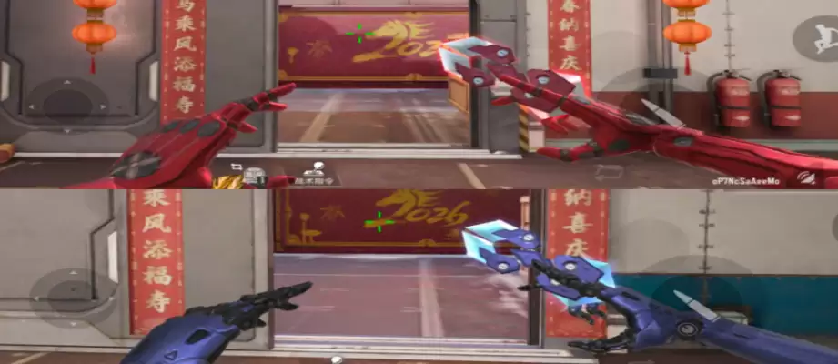 乔月这边风格完全不一样,走的是活泼少女路线。潜伏者是双麻花辫,保卫者是双丸子头半披发,灵魂武者形态是高马尾,三种造型看起来都很有活力。竞技模式里乔月的专属近战武器是鸳鸯钺,阵营不同颜色也不一样。生化挑战模式里换成鸳鸯环,有生化加成,重击能打出两段伤害,配合两段伤害数值叠加,实战里杀伤力不低。她的专属近战武器切出来不减移速,这点还是挺方便的。