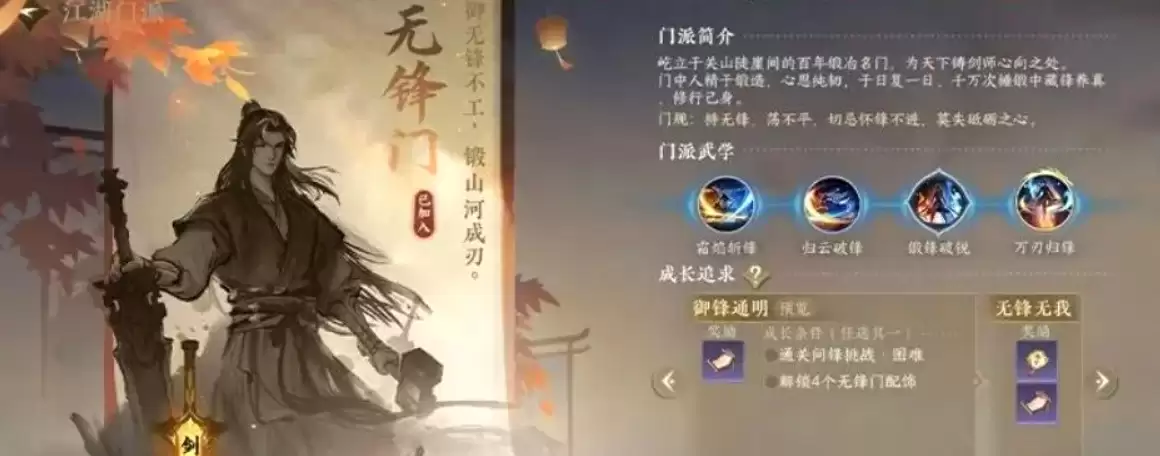 无锋门拥有一套独特的境界体系,这在其他门派里还没见过。它分为初入无锋、鸣锋问道、锋意渐盈、御锋通明、无锋无我一共五个等级,光听名字就很有层次感,不像有些门派只是简单地叠数字。不过要提醒一下,这个门派对玩家是有要求的,段位要跟上,装备也要持续强化。如果连续好几天没有进步,很可能会收到劝退信,和其他门派机制是一样的,别以为入了门就可以随便摸鱼。