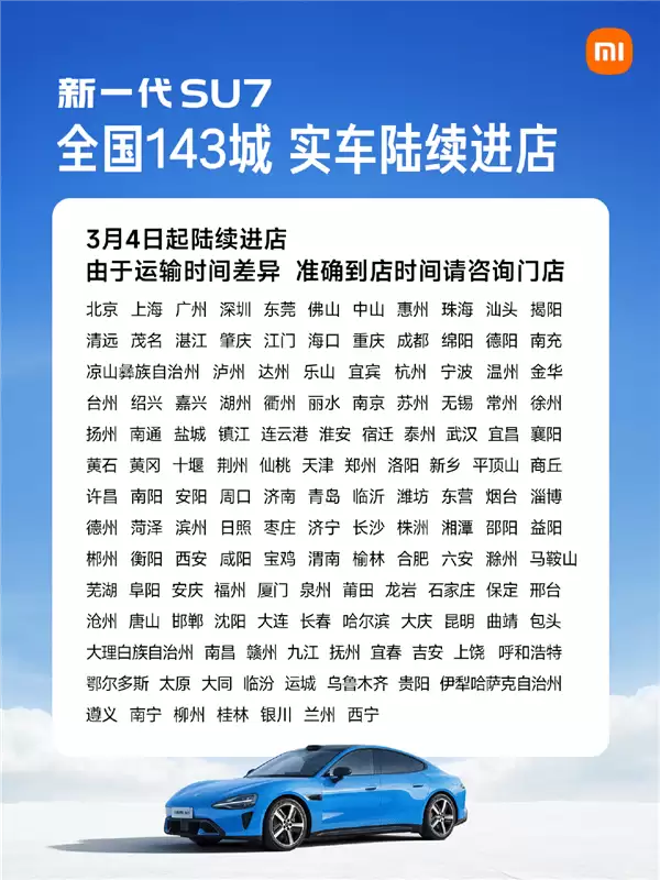 小米汽车近日发布公告,新一代SU7车型将于3月4日起陆续抵达全国各门店。预计到3月中旬,这款新车将完成对143座城市、共492家门店的全面覆盖。此次升级不仅延续了现款车型备受好评的经典设计,更在核心性能、续航里程和智能科技方面实现了全方位突破。新车预售价区间为22.99万至30.99万元,相较上一代车型普遍上调约1万元。