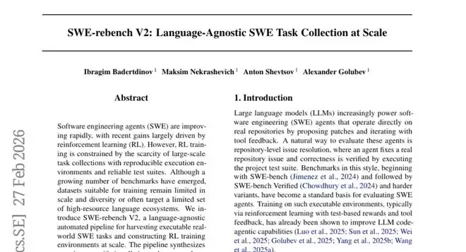在软件开发的世界里,训练一个会编程的人工智能就像培养一个优秀的程序员一样,需要大量的实践题目来练手。然而,目前市面上可用的编程练习题就像稀缺的珍宝一样,数量有限且覆盖面窄。来自荷兰阿姆斯特丹Nebius公司的研究团队在2026年3月发表了一项突破性研究,他们开发出了一套名为SWE-rebench V2的"神奇工厂"系统,能够像生产线一样自动化地从真实的开源项目中"挖掘"出海量的编程训练题目。