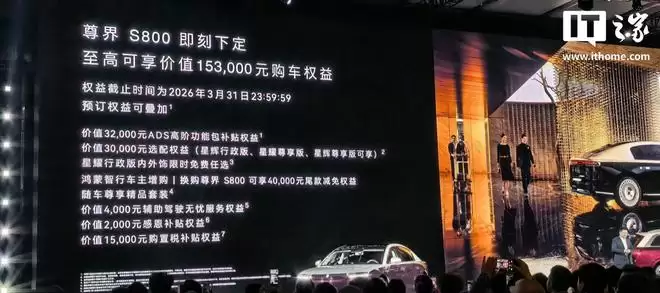 IT之家同时附上尊界 S800 与 问界 M9 的购车权益详情: