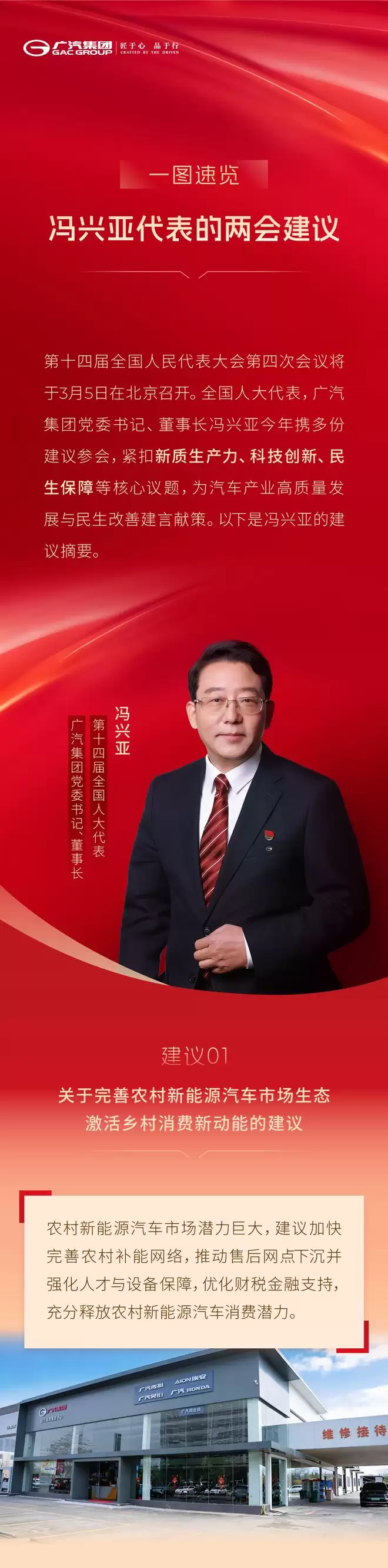 据IT之家3月4日消息,广汽集团官微透露,全国人大代表、广汽集团党委书记兼董事长冯兴亚今年携多份建议赴京,围绕新质生产力、科技创新、民生保障等核心议题,为推动汽车产业高质量发展与社会民生改善建言献策。