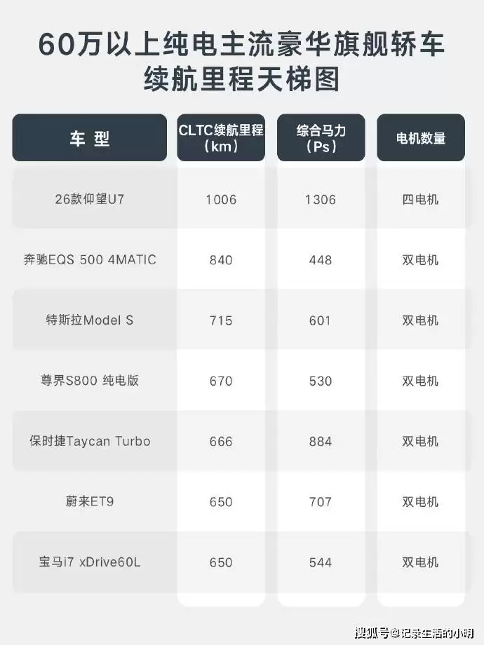 从产品定位来看,仰望U7采取纯电和插混双线并行的策略。纯电版续航里程高达1006公里,百公里加速仅需2.9秒,主打“人无我有”的独特优势;插混版电机总功率达1000kW,纯电续航220公里,重点解决用户的里程焦虑问题,让用户无需担忧长途出行的电量问题。