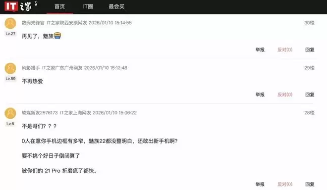 “0人在意你手机边框有多窄”,魅族如今得到的评价,大多是用户的嫌弃。(图/IT之家)