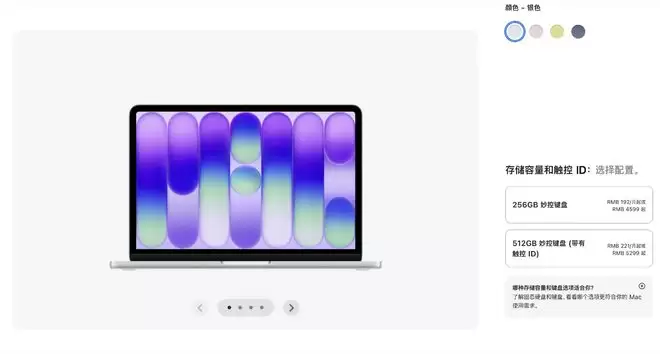 3月4日,MacBook Neo正式上架Apple Store,定价4599元起,搭载A18 Pro芯片,拥有8GB+256GB(无触控ID)、8GB+512GB(带触控ID)两个版本。是目前最新定价最便宜的一款MacBook。
