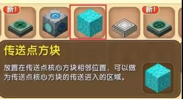 3、传送点方块需要放置在传送点核心方块相邻的位置才能使用,它可以作为传送进入的区域中。