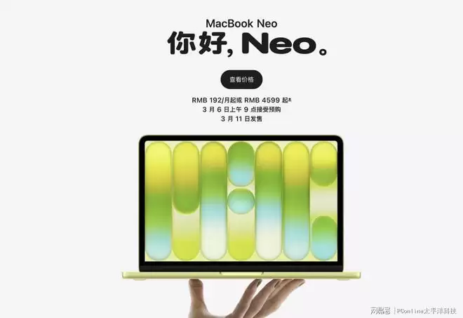 3 月 4 日,传闻已久的搭载 A18 Pro 芯片的苹果MacBookNeo正式亮相,这是苹果首次使用 “Neo” 后缀命名 Mac 产品,定位入门级 “青春版”,起售价4599元起,补贴后价格有望下探至4000元以内。而作为苹果 Mac 产品线首次搭载手机端 A 系列芯片的量产机型,其标志着苹果手机芯片已具备支撑笔记本日常使用的完整能力,实现从手机到笔记本的跨平台落地,也让苹果自研芯片生态进一步打通。
