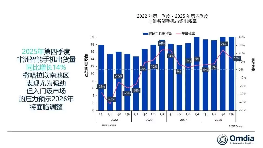 Omdia:2025年Q4非洲智能手机出货量同比增14%至2310万部