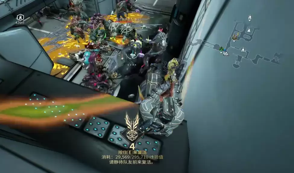当队友无法及时抵达,或当前战局已陷入全面劣势时,玩家可启用自我复活功能。每名战甲在单次任务中拥有四次自我复活机会,每次使用将消耗当前任务中累计获得的经验值。触发后角色立即恢复站立状态并重返战斗,属于关键时刻的应急保底手段。