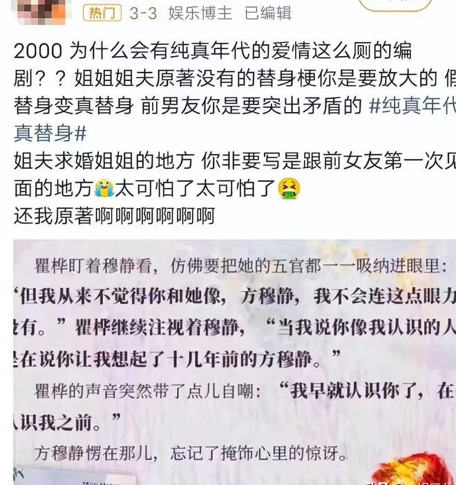 结果剧里的瞿桦承认了,一开始确实把姐姐当替身,后来才逐渐爱上。