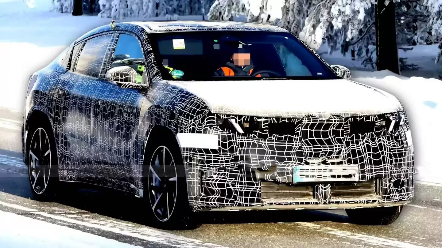 尽管测试车覆盖着严密伪装,但前脸轮廓已显露出标志性的双肾格栅进化形态,配合棱角分明的LED灯组,营造出更具侵略性的视觉效果。车身侧面延续了轿跑SUV经典的溜背设计,通过立体腰线与宽体轮拱强化运动气质。尾部采用纤细的贯穿式灯带,内置全LED光源矩阵,在点亮后极具辨识度。