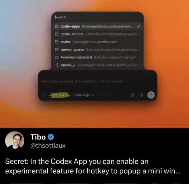 接下来,更戏剧性的一幕出现:OpenAI Codex团队的一名员工Tibo在社交平台上发布了一张截图。图中,模型选择器里赫然写着GPT-5.4。