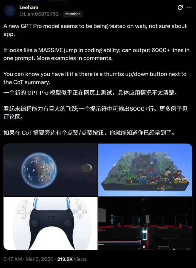 一些测试者表示,模型的推理明显更快,代码生成更长,甚至一次提示可生成6000+行代码!