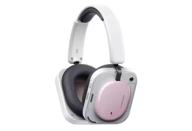这款耳机提供黑、白、粉、黄四种配色可选,沿用了Nothing Headphone(1)的标志性透明设计风格,配有独立的音量滚轮、拨片及多功能按键。此外,它还支持作为远程相机快门遥控器使用。