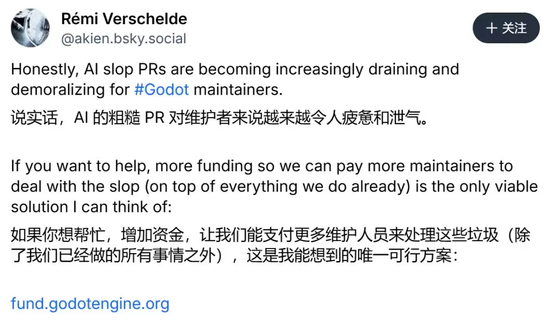 Godot维护者谈AI代码冲击:海量低质提交引发社区崩溃