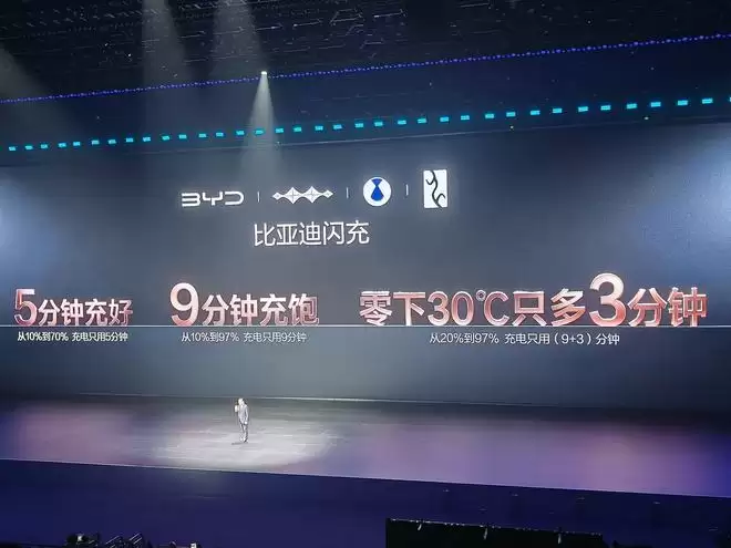 他指出,目前行业普遍充满电需要约一小时,超充也需半小时,而比亚迪将充电时间压缩至10分钟以内,“这才有资格称为‘闪充’”。