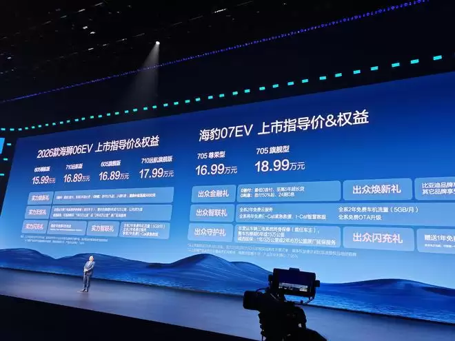 其中,海狮06EV和海豹07EV迎来上市,前者共推出四个版本,售价区间为15.99-17.99万元,后者共推出两个版本,售价分别为16.99万元和18.99万元。