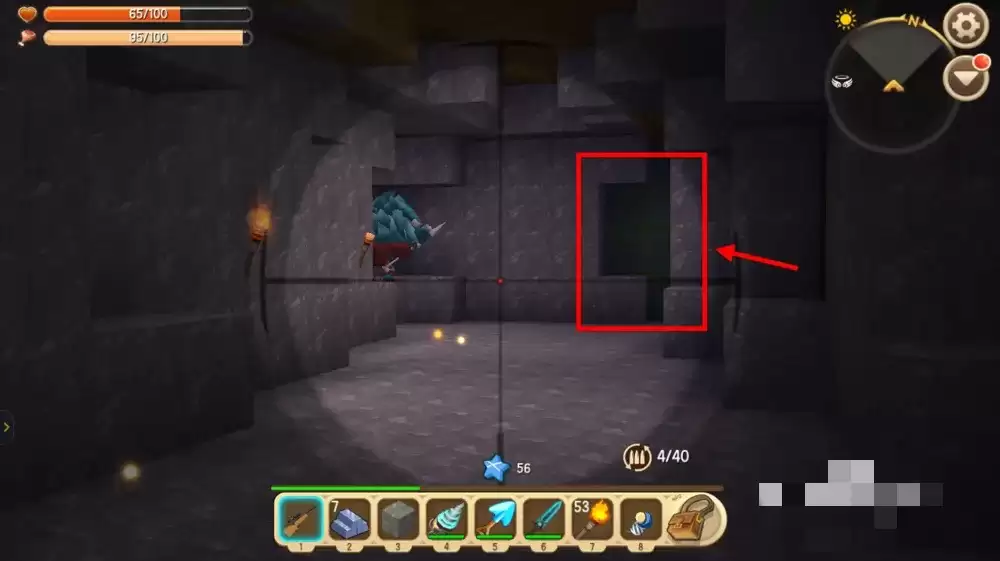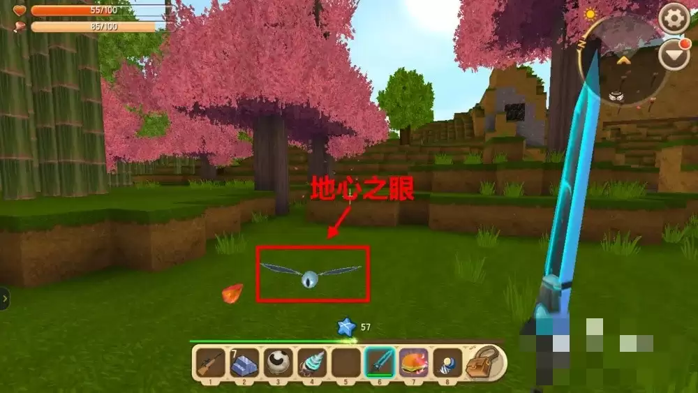 玩家手持地心之眼,右鍵點擊讓它飛出,它掉落位置的下方就是地牢所在。