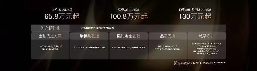 三款新车的定价延续了仰望品牌的高端定位:U7+ 2026款起售价65.8万元,U8+ 2026款起售价100.8万元,而定位于行政旗舰的U8L鼎世版起售价达130万元。尽管价格不菲,但闪充技术带来的补能效率提升被视为解决用户痛点的关键——长途旅行或商务出行时,充电时间可缩短至一杯咖啡的工夫,仰望将其定义为“对时间的绝对掌控”。