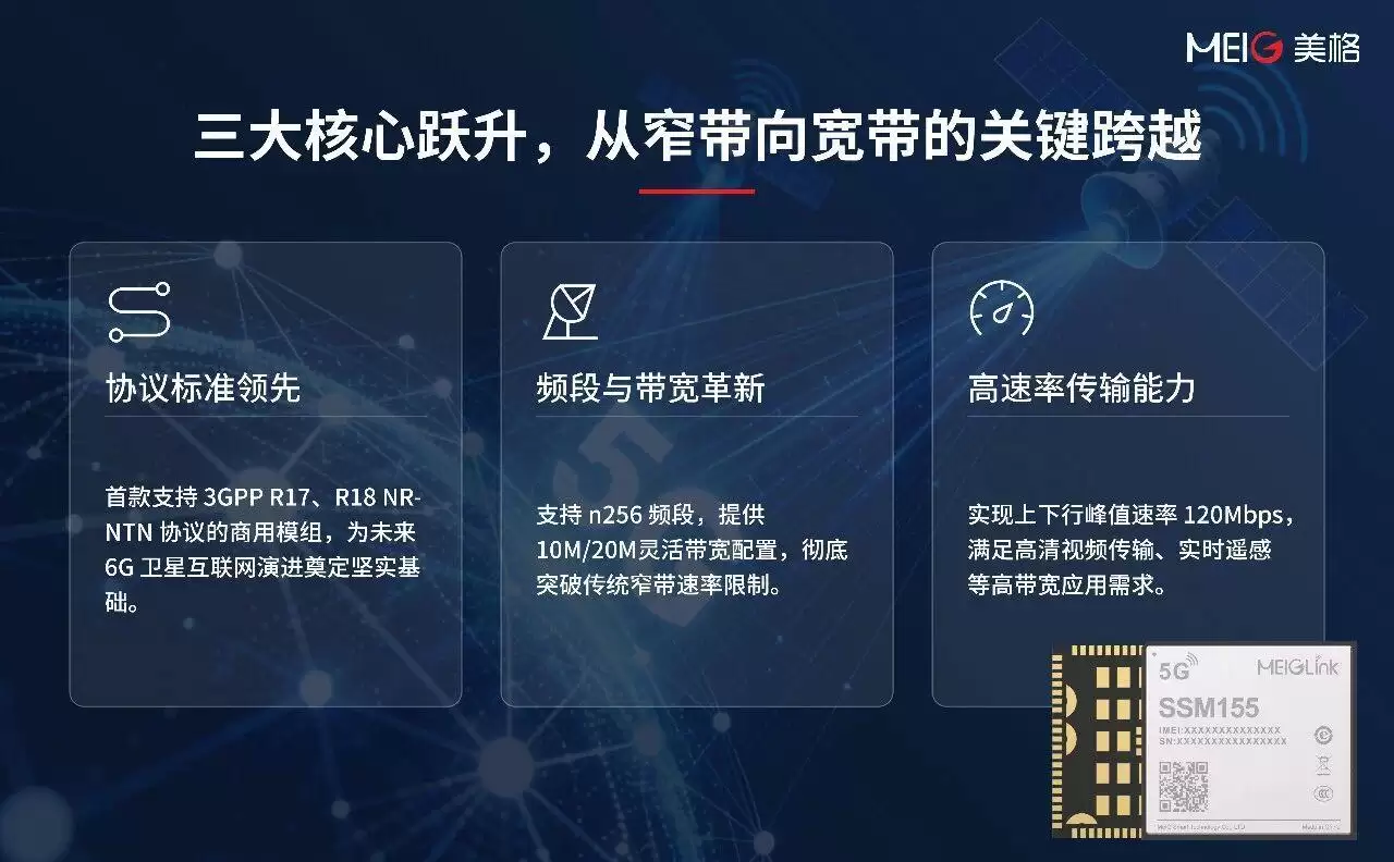 美格智能首发低轨宽带卫星模组:峰值速率达120Mbps
