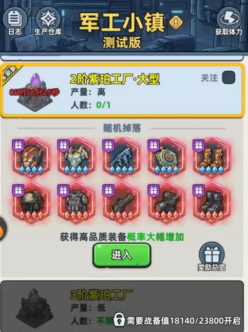 当你解锁军工小镇玩法的同时,指挥官装备功能也会同步开启。军工小镇正是游戏中获取指挥官装备最主要的途径。这片区域盘踞着各种怪物,它们占据了生产指挥官装备的工厂。玩家首先需要与这些怪物战斗,成功击败它们后,就能使用工厂来生产指挥官装备了。工厂的品阶越高,所能生产出的指挥官装备品质也就越好。同时,游戏内也会为玩家列出各个工厂能产出的装备详情,大家可以根据自己的需求去选择。