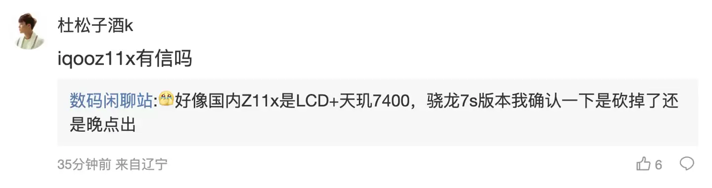 随后,有用户在评论区询问:“iQOO Z11x这款手机的消息属实吗?”博主回复称:“国内的Z11x似乎是LCD屏幕搭配天玑7400处理器。至于骁龙7s Gen3版本,我需要确认一下,究竟是产品规划调整取消了,还是会稍晚些再推出。”另一名用户则追问:“年底的旗舰机型会不会有采用9极耳电池的?”对此,博主给出了肯定的答复:“子系列产品线会有。”