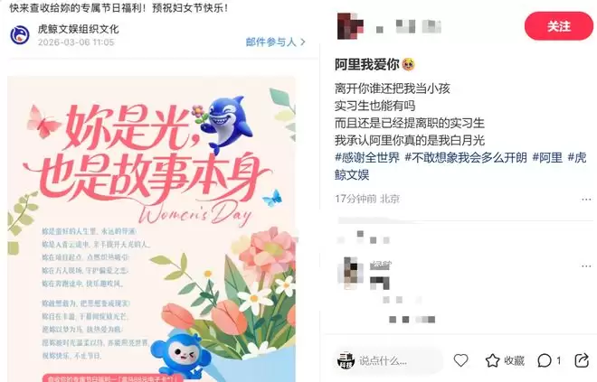阿里虎鲸文娱妇女节福利揭秘:实习生也可领88元盒马卡