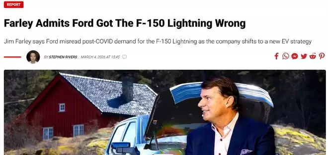 福特CEO反思纯电皮卡失利:对市场预判存在误读