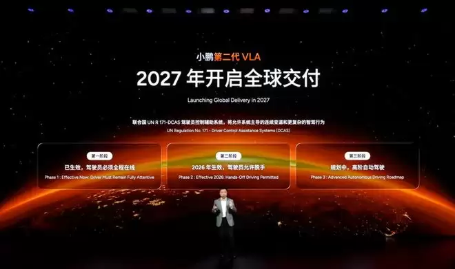 在发布会上,他以今年 1 月份联合国交通法规为例。联合国已经放开了全球自动辅助驾驶的时间表。何小鹏评价其为“非常激进”,将在 26 年允许驾驶员脱手。