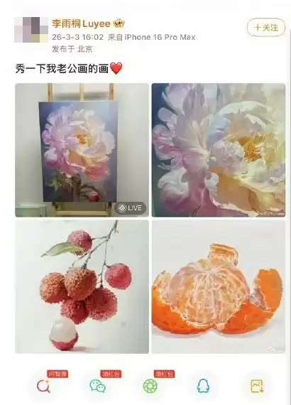 除此之外,李雨桐还晒出一组油画,自称是她老公画的,又被原作者出来打假,称根本就不认识她。夸大妄想,是精神分裂症的常见症状。