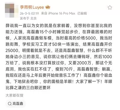 薛爆料过李雨桐那几年频繁找他要钱,这中间,很难说不是因为女方心里不平衡。