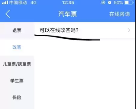 6. 点击进入后,会弹出一个对话框,询问是否可以在线改签。
