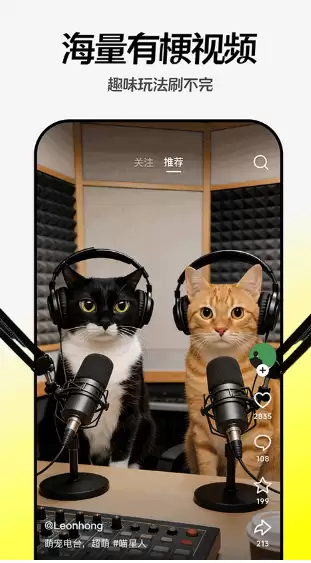 创意合拍:支持与热门角色或好友一键合拍,创作有梗剧本视频。