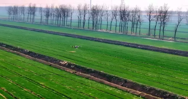 湿润的麦田上空,一架架植保无人机正按照设定路线穿梭作业。“装肥、起飞、喷施,一气呵成。一台无人机每小时可施肥50亩,全天候连续作业可达千余亩。”六生产区负责人倪信军说,无人机作业不受田间路况影响,不仅效率倍增,还能有效避免传统拖拉机进田对小麦根系造成的损伤。