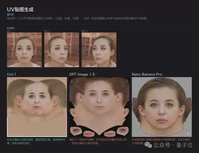 Uni-1生成的UV贴图在这三个维度上都明显优于GPT Image 1.5、Nano Banana Pro: