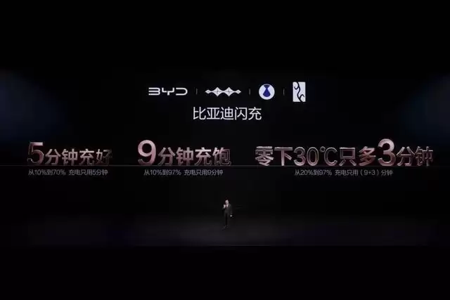3月5日,比亚迪在深圳召开发布会,正式发布第二代刀片电池及闪充技术,创造了全球量产最快充电速度新纪录——从10%到70%,只用5分钟就能充好;从10%到97%,只用9分钟就能充饱;零下30度,从20%到97%,只比常温多3分钟。